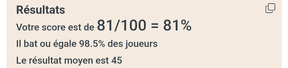 J'ai obtenu 81 sur 100 pour 5 / 5 points