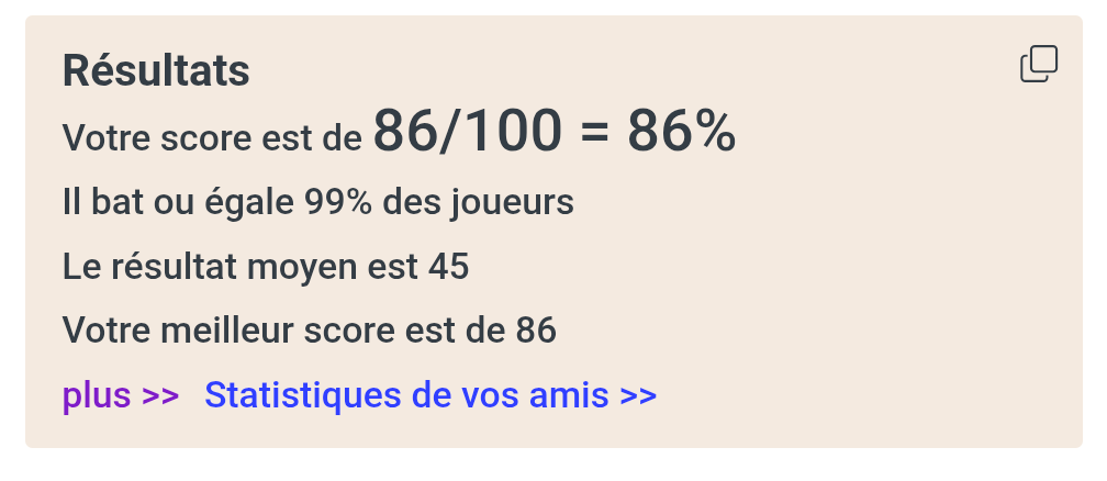 J'ai obtenu 86 sur 100 pour 5 / 5 points