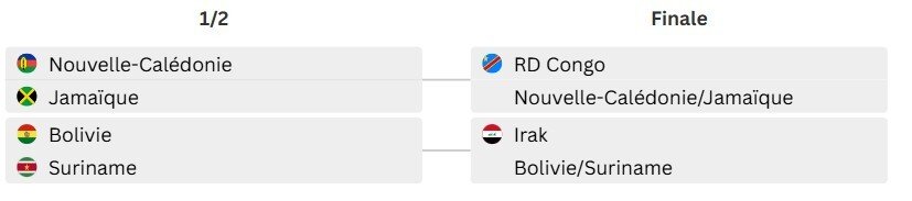 - il ne peut y avoir plus d'un pays par zone (continent) dans chaque groupe, à l'exception des Européens où la limite est portée à deux. Pour les barragistes intercontinentaux, la règle s'applique aux 3 équipes. Ainsi, pour la voie 1, trois continents sont représentés : l'Océanie (Nouvelle-Calédonie), l'Amérique du Nord (Jamaïque) et l'Afrique (RDC). Le vainqueur ne pourra donc être affecté qu'à un groupe sans Nord-Américains, sans Océaniens et sans Africains (donc pas celui de la France me dit-on)