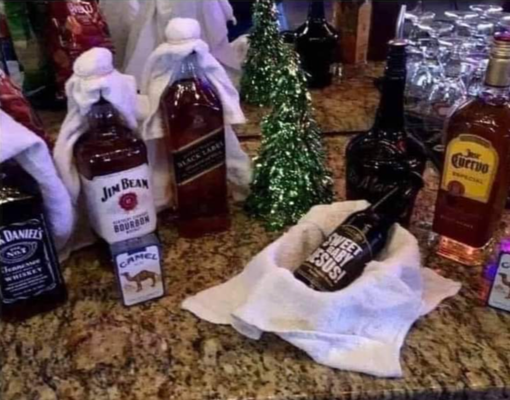 Ah j’ai jamais mis sous le sapin moi, de toute façon je ne suis pas catholique, je ne m’occupe pas de ca