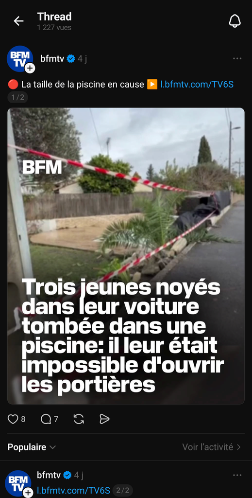 Genre là oui la piscine était pas prévue pour se garer dedans mais à quel moment tu envisages ce cas de figure ?!? Surtout que même si tu prévois le truc en mettant des barrières ben une voiture qui les defonce c’est ta faute.