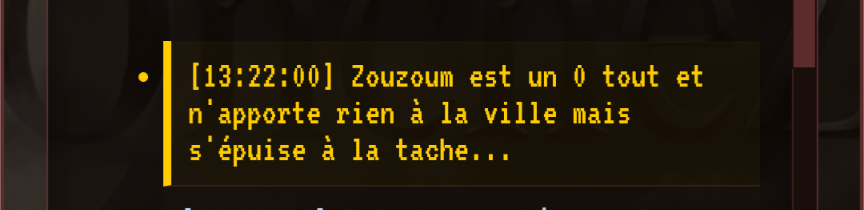 - !branler : Permet de se vider pour tenter de regagner 2 PA (0 PA, dispo toutes les 3h)
