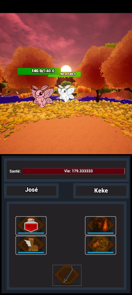 C'est très basique. Le hero et se on acolyte partage la même barre de PV. Les techniques ont des cooldown en nombre de tour