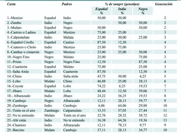 Les métisse les créoles les européen et les native américain... ils ont une classification que je n'ai plus en tête