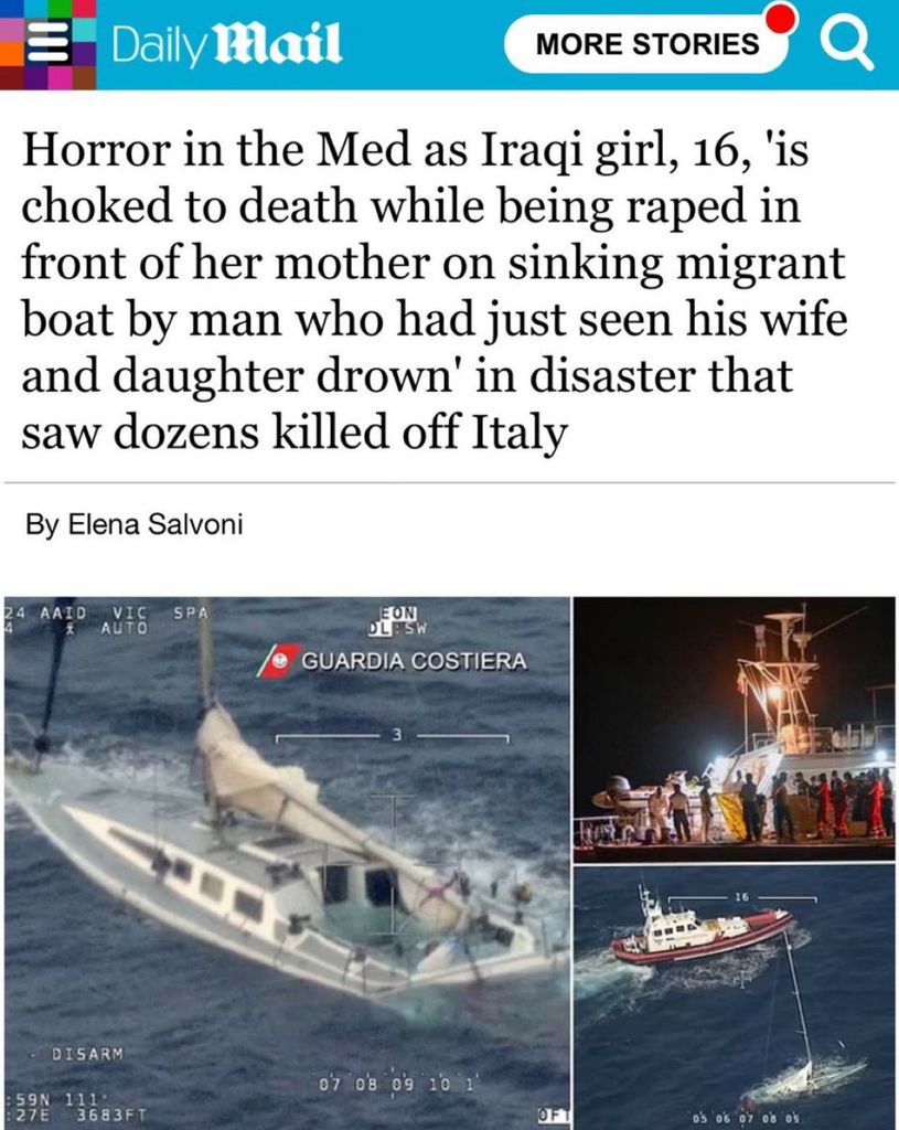 Violer une gamine de 16 ans devant sa mère jusqu'à l'étouffer pendant que le bateau de migrants continue de sombrer