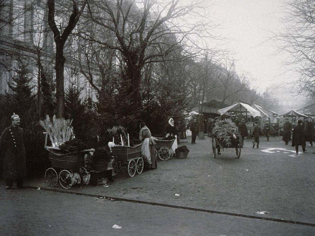 Le Marché de Noël de Strasbourg durant la période du Reichsland. Notez le policier à l'aspect bien prussien