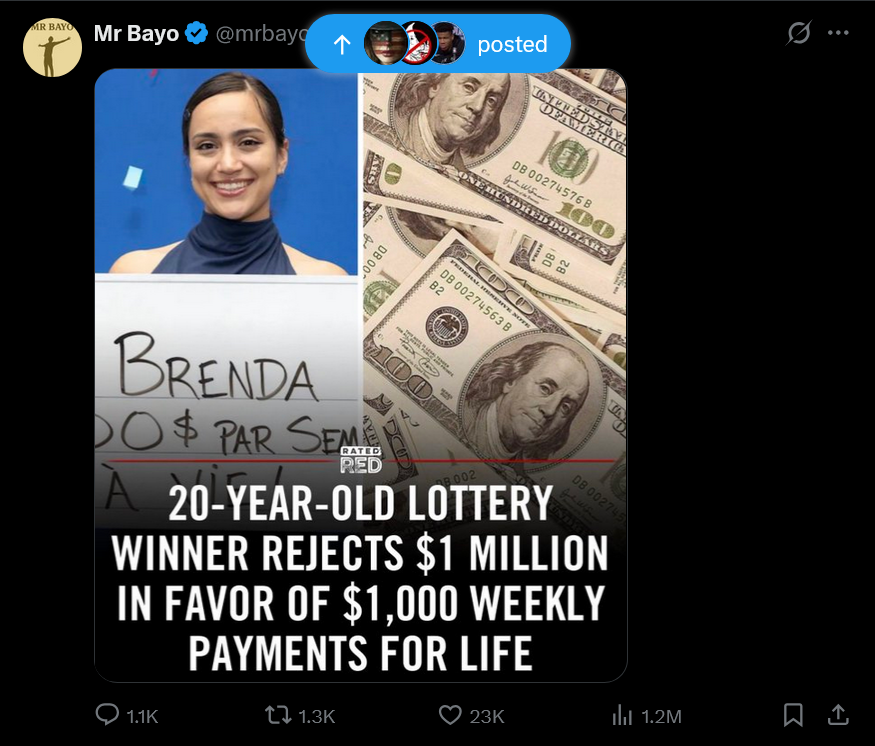Non les 1k par semaine c'est a vie pas jusqu'au million