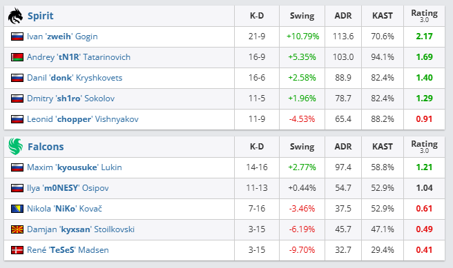 Dust 2 (aka la chambre de donk) : Falcons officiellement FINITO