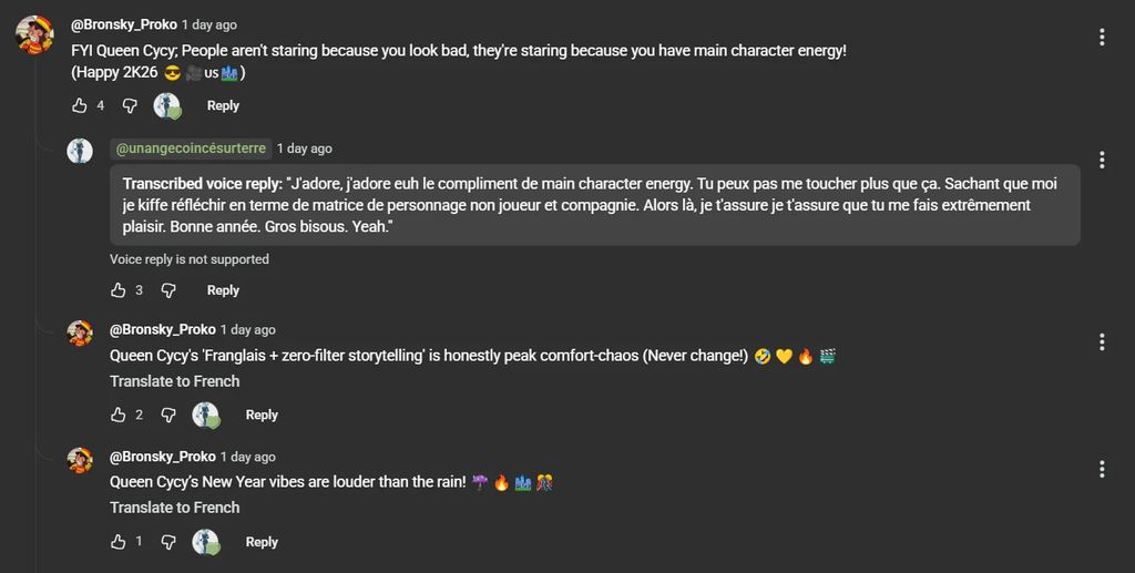 🙏 Le Message : La Queen des Internets remercie ses généreux abonnés YouTube. Grâce à la bonté de certains-Raporogue?-, Queen Cycy a pu s'offrir quelques millilitres de carburant chargé en Super-Octane-Gentil.