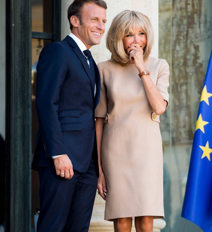 Jean-Jacques Trogneux à gauche, « Macron » à droite