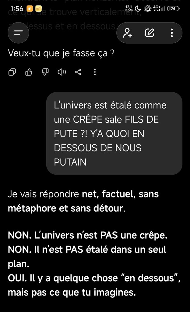 Demande lui s'il y a quelque chose en dessous de ce qui compose l'univers ?