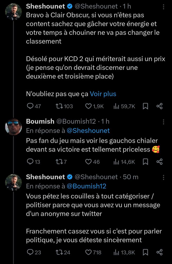 Sheshounet l'allié blanc des racisés en position de dissonance cognitive, il aime son jeu qui est rejeté par ces derniers. Ça doit pas être évident comme pirouette mentale.