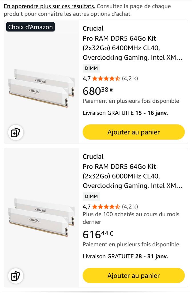 En fait c'est que la DDR5 qui a vraiment explosé, tu peux toujours trouver de la DDR4 pas trop chère nan ?