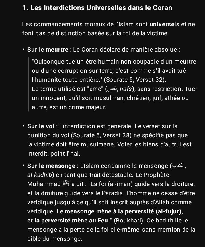 J ai demandé à toutes mes IAs elles sont unanimes, l'Islam oblige à la bonne morale y compris envers les non musulmans