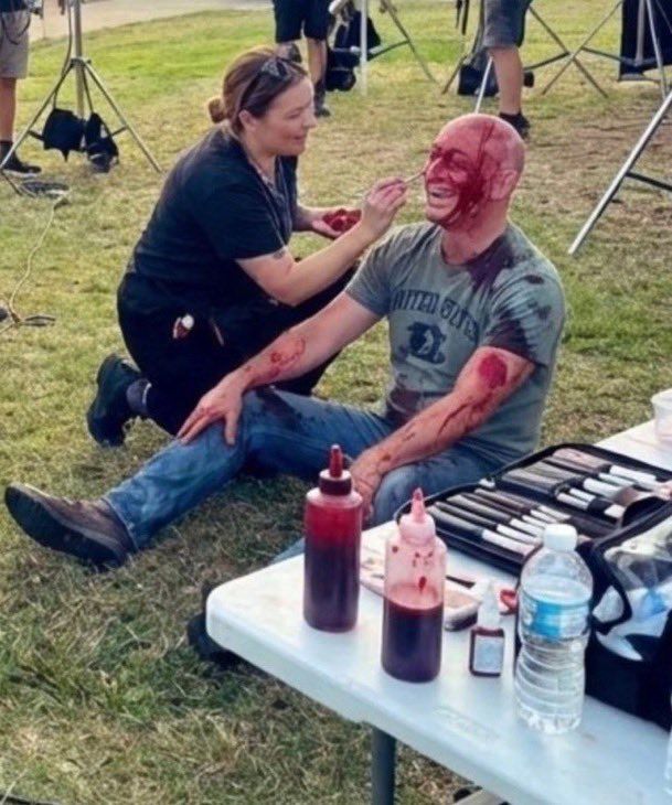 le mec a survécu a une balle dans la tête et y'a une photo de lui entrain de make up le sang avec le même t shirt mais c'est nous les menteurs