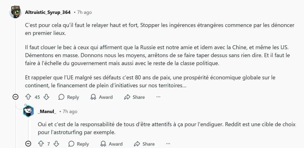 Le premier que je prends à astrosurfer le Kremlin sur r/France aura affaire à moi, c'est compris ?