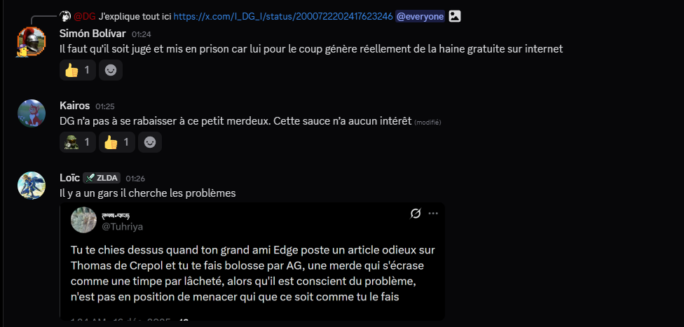 Tout en suçant son pote Edge quand il relayait des saloperies sur x à propos de Thomas de Crepol, DG est un animal de compagnie arrogant, un Chihuahua docile et émotionnel