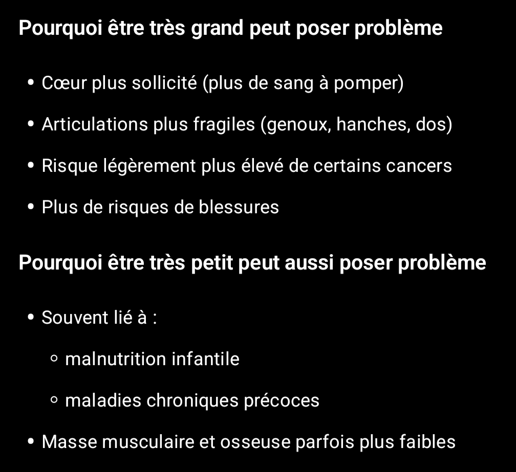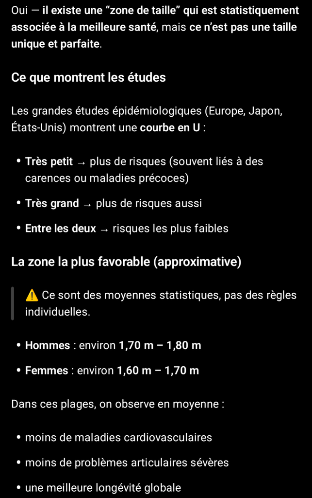 Selon ChatGPT être grand, voir très grand = + de problèmes de santé