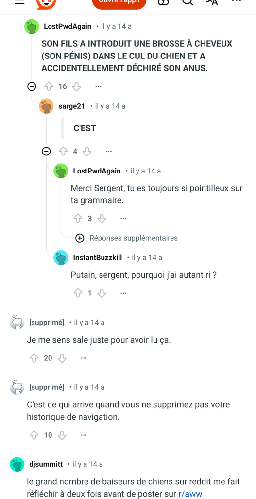 vous voyez qu'on est l'élite, les mecs sur reddit quand ils veulent troller ils font pas le truc à moitié, même le khey le plus taré de onche est moins taré que ces mecs