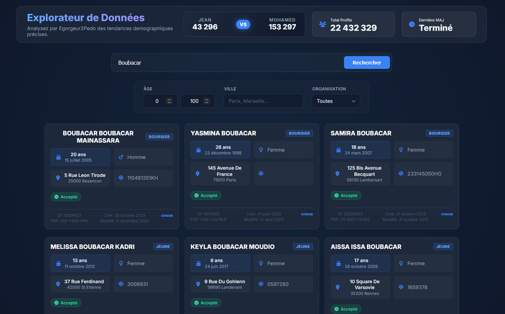 Je vois pas trop comment en tirer la moindre conclusion que ce soit Mohamed ou Elisa en tête pour le coup sans la base de donnée complète de bénificaire et avec enfants affilité.