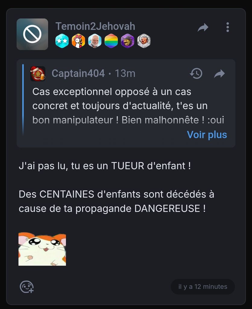 @Temoin2Jehovah deviens marzboub et fout un coup de pression à @Captain404