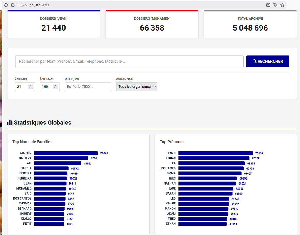 Et surtout, y'a un khey qui a posté d'autres stats taleur, t'avais Martin en premier nom, et tout de suite après Diallo, puis Traoré, puis Cambara