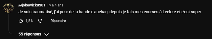 Tout ça pour terroriser des p'tits vieux et faire un haka tout pourri devant le vigile, médusé, non seulement par ce qu'il vient de voir, mais aussi par la connerie de son entreprise, car tout cela a reçu la bénédiction du Gotha d'Auchan