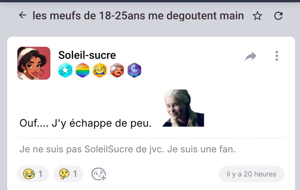 Je ne suis pas SoleilSucre de jvc. Je suis une fan.