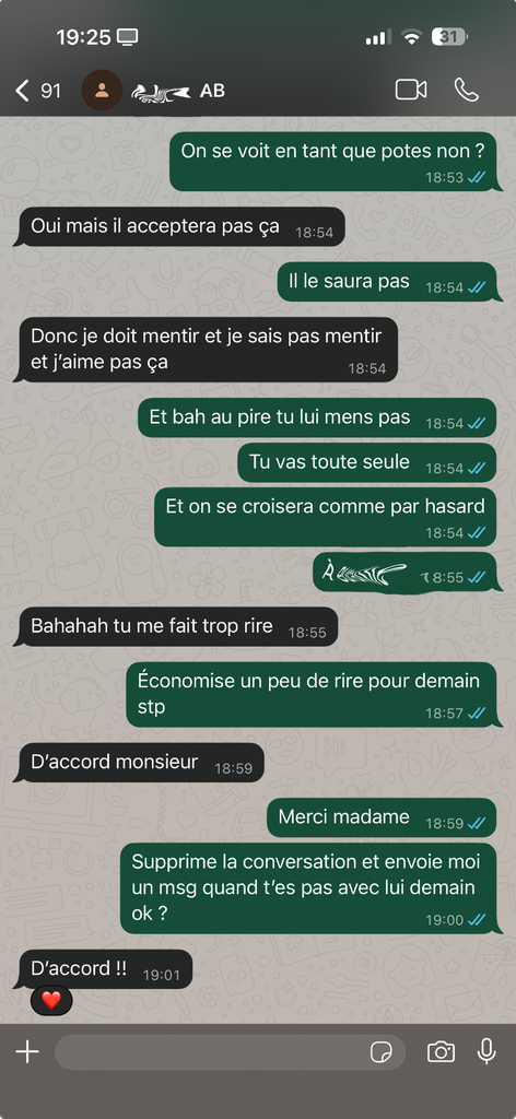 Je sais que depuis elle a un gars mais moi j'adore ça donc... (elle m'avait pas bloqué sur whatsapp hahaha)