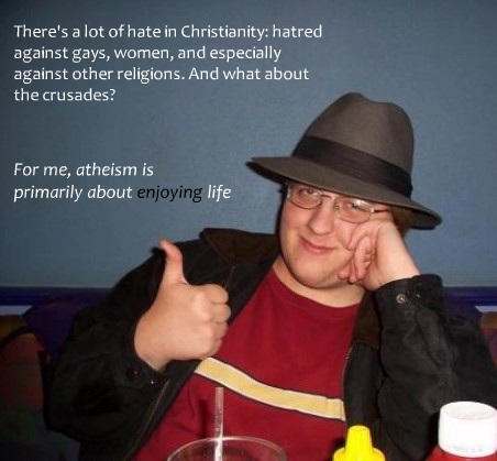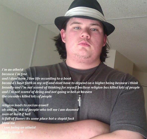 Aya les cathocucks rageux qui ont pris des photos de chouffins random pour y ajouter le texte athéiste