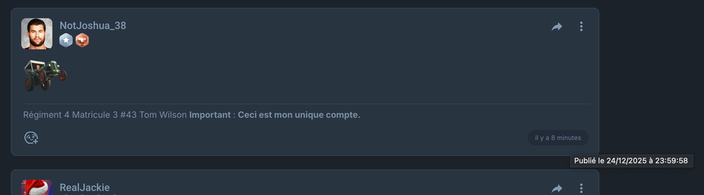 Régiment 4 Matricule 3 #43 Tom Wilson Important : Ceci est mon unique compte.