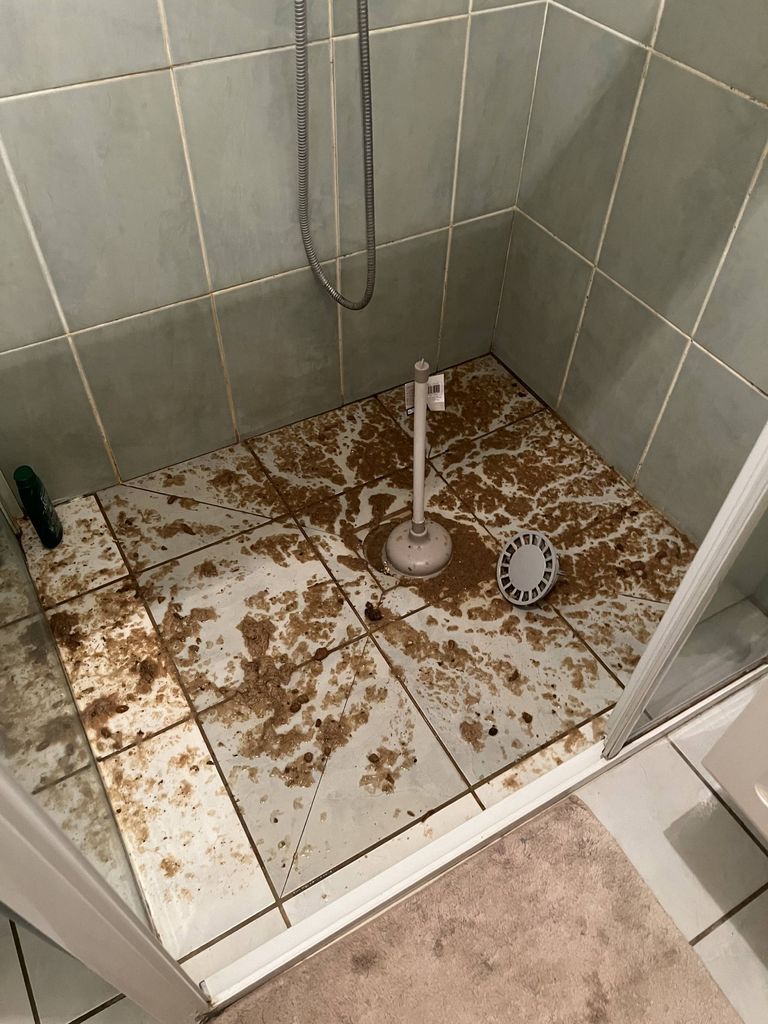 Il y a actuellement une marre de merde dans ma douche, je sais pas quoi faire
