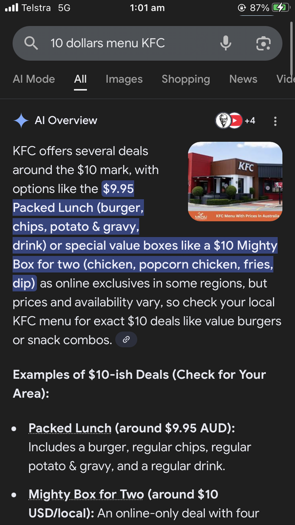 A part le logement. Rien est cher. Le menu KFC qui te mets repu c’est 10 dollars