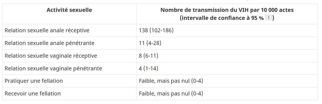Voici les chances pour le SIDA. C'est pareil pour toutes les maladies btw, la personne pénétrée (donc la femme... ou la fiotte, ça m'étonnerais pas que vous vous fassiez peg honnêtement) est naturellement beaucoup plus exposée que l'homme.