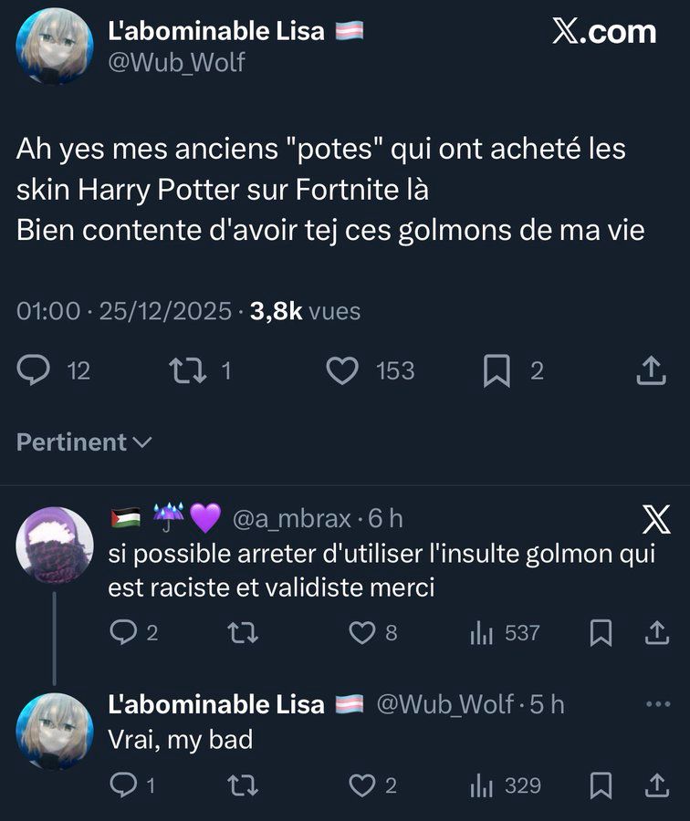 Merci de ne pas utiliser le mot "tej", pousser à l'exclusion est un principe crypto quantiquo fasciste à l'origine de la plupart des troubles tripolaires PTSD-QIA%