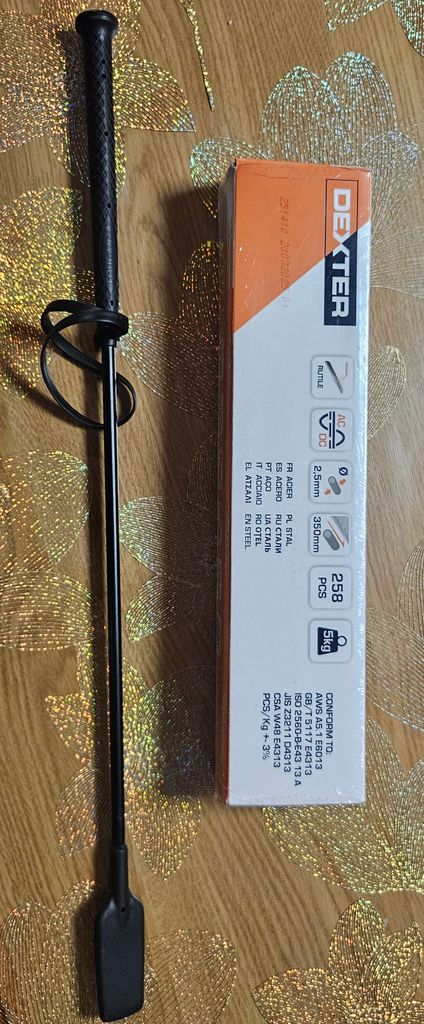 J'ai acheté une énorme quantité de baguettes de soudures, pour fouetter des fesses, et une cravache pour soudé des trucs.