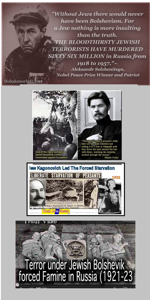 Les bolchéviques sont les juifs qui ont massacré 20 millions de russes ethniques chrétiens. Je ne nourris rien, je ne fais que poster des images pendant que vous suez.