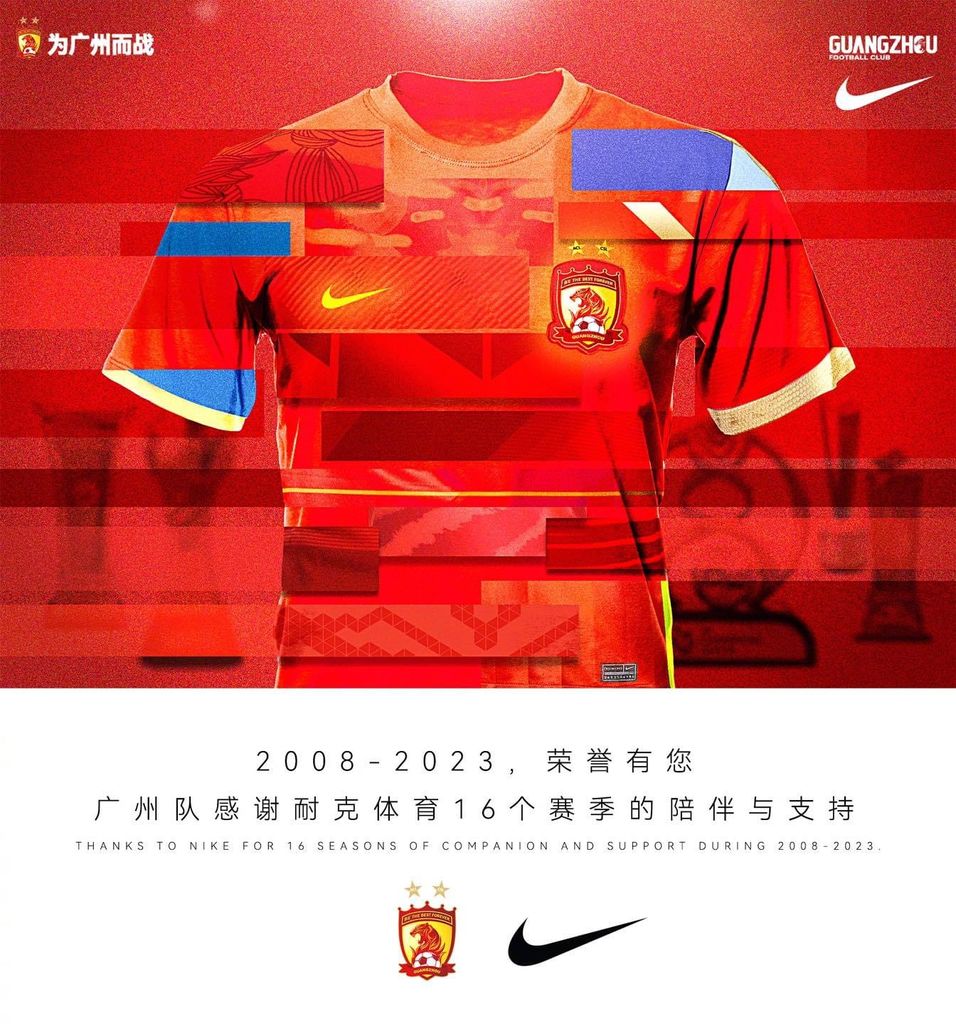 Prévisible Nike n'a qu'un contrat avec les clubs de Chinese Super League, pour Guangzhou FC ce sera sûrement Kelme.