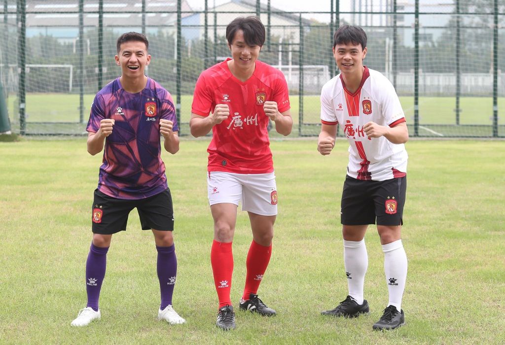 Voici les nouveaux maillots 2024 portés de l'équipe du Guangzhou FC.
