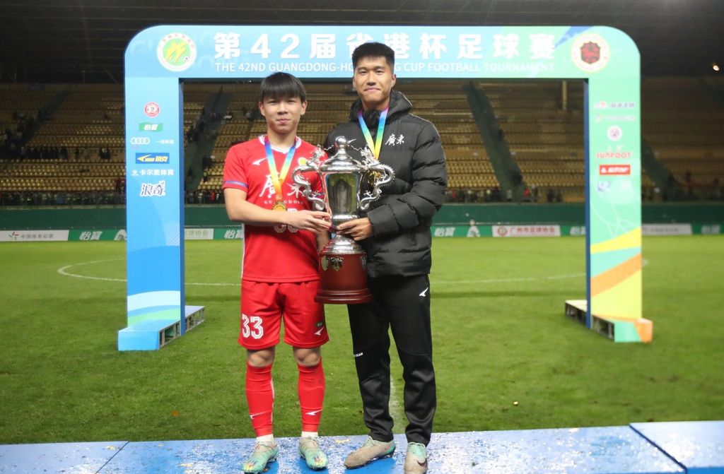 Les joueurs Hou Yu et Wang Shijie du Guangzhou Evergrande ont gagnés la 42e coupes du Guangdong, en jouant pour l'équipe du Guangdong face à l'équipe C d'Hong Kong.