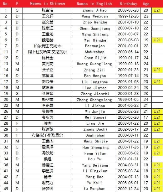 La liste officielle des joueurs pour la saison 2023, malheureusement les vétérans et anciens internationaux chinois : Hao Rong 36 ans , Zhang Chenglin 36 ans , Li Xuepeng 36 ans, Hao Junmin 36 ans, Huang Bowen 35 ans ne joueront pas la saison 2023.