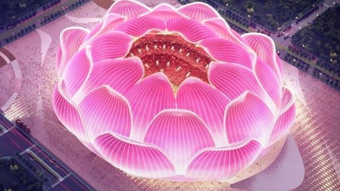 Bien évidemment avec la faillite d'Evergrande, ce sera un stade plus petit 50 000-60 000 places, mais les travaux ont repris en Octobre 2022 et finiront vers Janvier - Mars 2025.