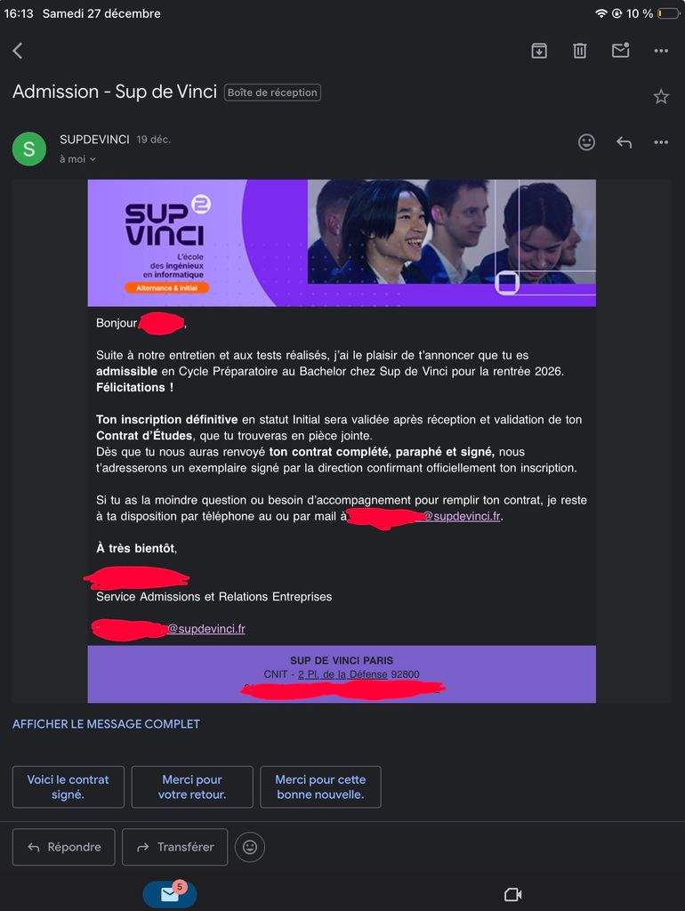 La j’ai déjà passé des tests dans deux écoles histoire d’essayer de preshot parcoursup (ESGI et sup de Vinci, moins connu)