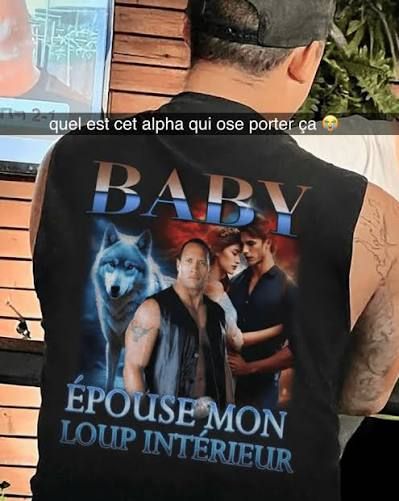 Je porte souvent un t-shirt du genre qui dit "baby épouse mon loup intérieur", j'adore le design absolument affreux du machin