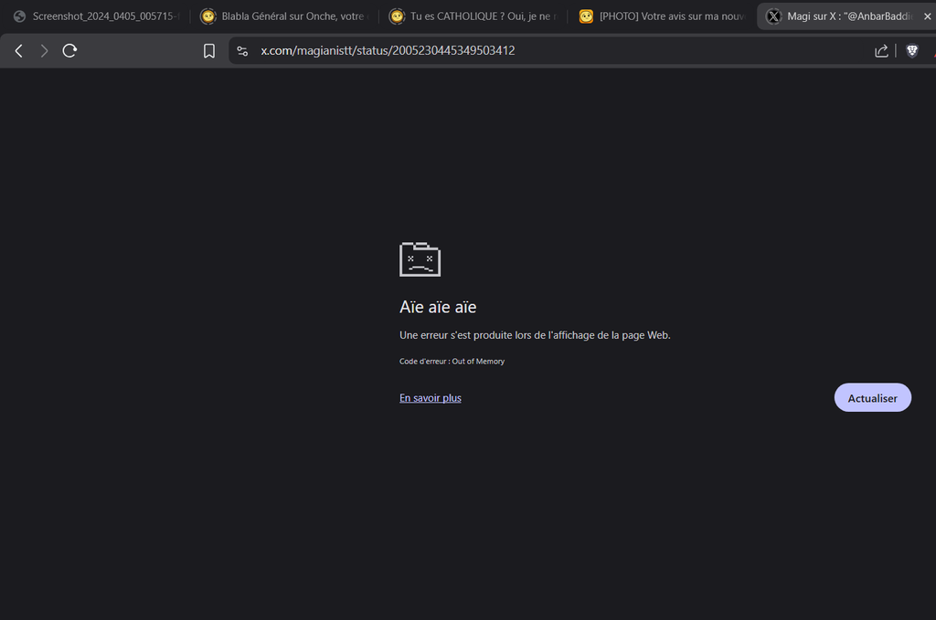 Meme sur Onche il plante ya des blacks screen juste car je change de topic