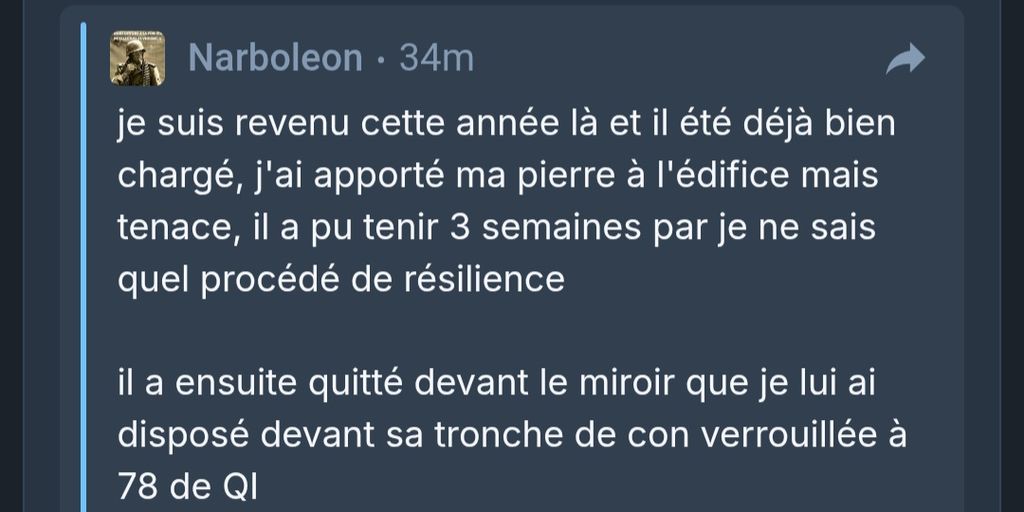 L'an dernier, il a tenté un retour, le jour même je l'ai atomisé en trois posts en tout courtoisie khey