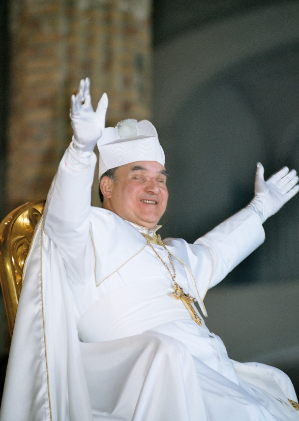 Ceux qui l'accompagnaient à Bogotá assurent avoir vu un papillon se poser sur la tête de Clemente Domínguez, au moment même où il tombait en extase et avait la vision du pape Paul VI venant de mourir à Castel Gandolfo ; avec saint Pierre qui l'accompagnait, le défunt pontife proclamait que Jésus-Christ avait directement choisi le nouveau pape. Le papillon fut capturé et conservé comme une relique parce qu'on croyait que c'était la forme prise par l'Esprit Saint pour sanctionner de façon visible l'élection papale. Le nouveau pontife donne immédiatement sa première bénédiction urbi et orbi depuis le balcon de sa chambre d'hôtel à Bogotá, paré des ornements pontificaux et la tête ceinte d'une tiare pontificale improvisée.