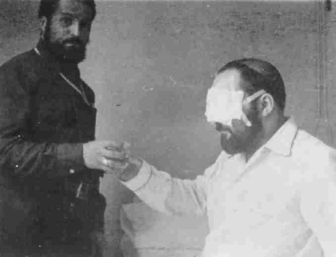 Le Père Clemente a reçu un coup violent à la partie supérieure du nez et aux deux yeux, et a été transféré à la Residencia Sanitaria de Nuestra Señora de Aránzazu à San Sébastien. En chemin, il versait continuellement du sang et il ne voyait rien. Peu de temps après avoir été admis à la résidence, les deux globes oculaires ont été extraits, car l’un a été complètement détruit par le coup et l’autre était plein d’éclats de verre, de peinture, etc., et il n’a pas été possible de le sauver, parce que lorsqu’ils ont essayé de le nettoyer, il s’est désintégré.