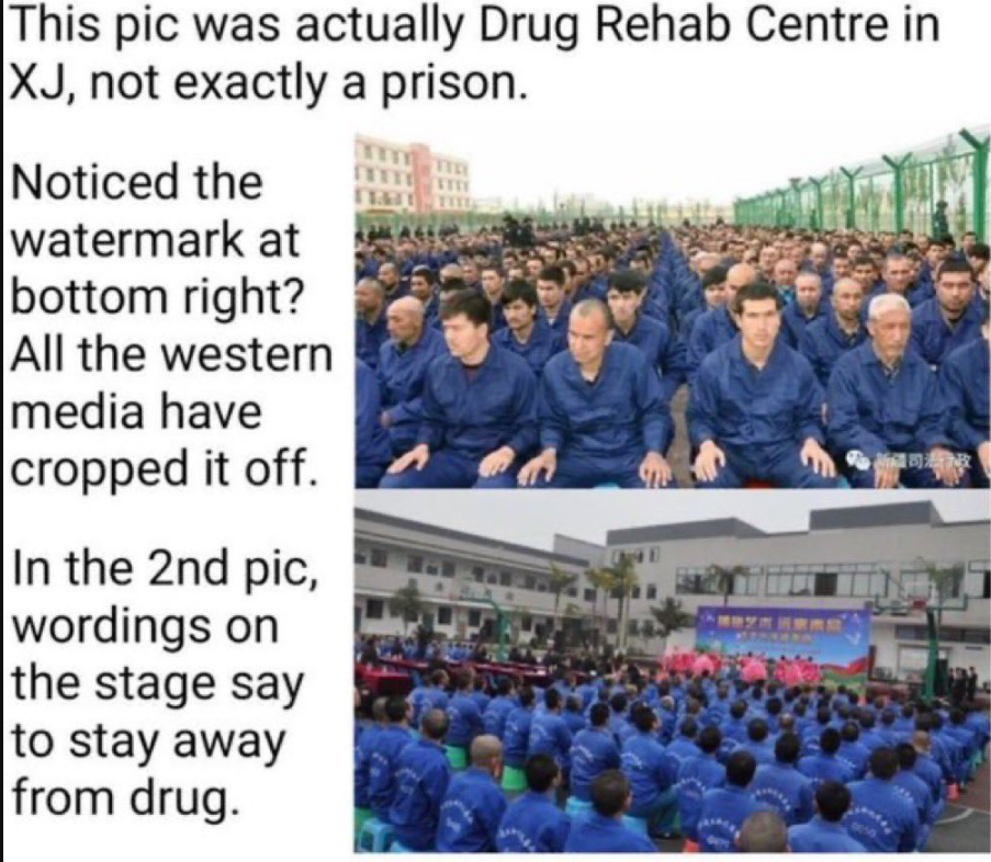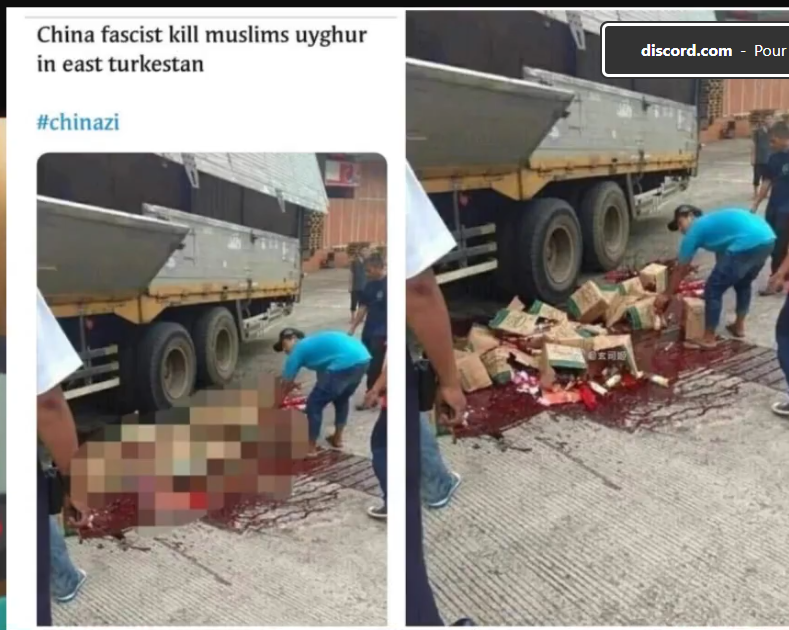Les sois disant photo de uighur torturer alors que c'était des photo de torture du falun gong qui est une secte ,ou alors des photo bien fake ahi