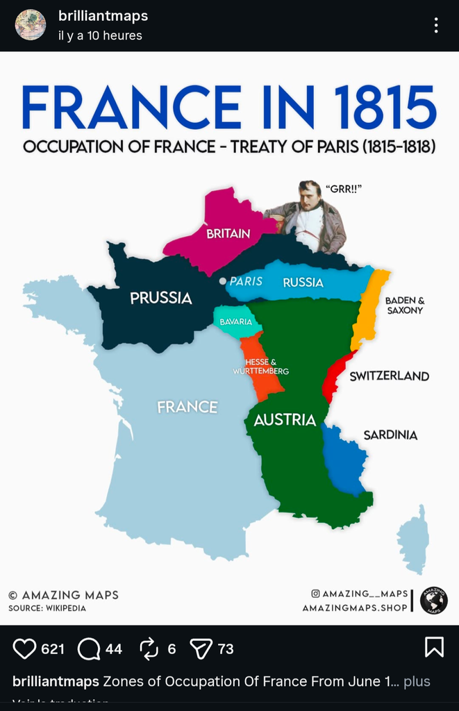 Bilan des "conquêtes" napoléoniennes: réduction du territoire français au prix de la mort d'un millions de jeunes français
